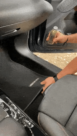 🔸Quite los tapetes del automóvil y esparza el producto en el piso en partes por igual en los 4 puestos hasta vaciar el contenido del frasco, también puede agregar una parte en el baúl.